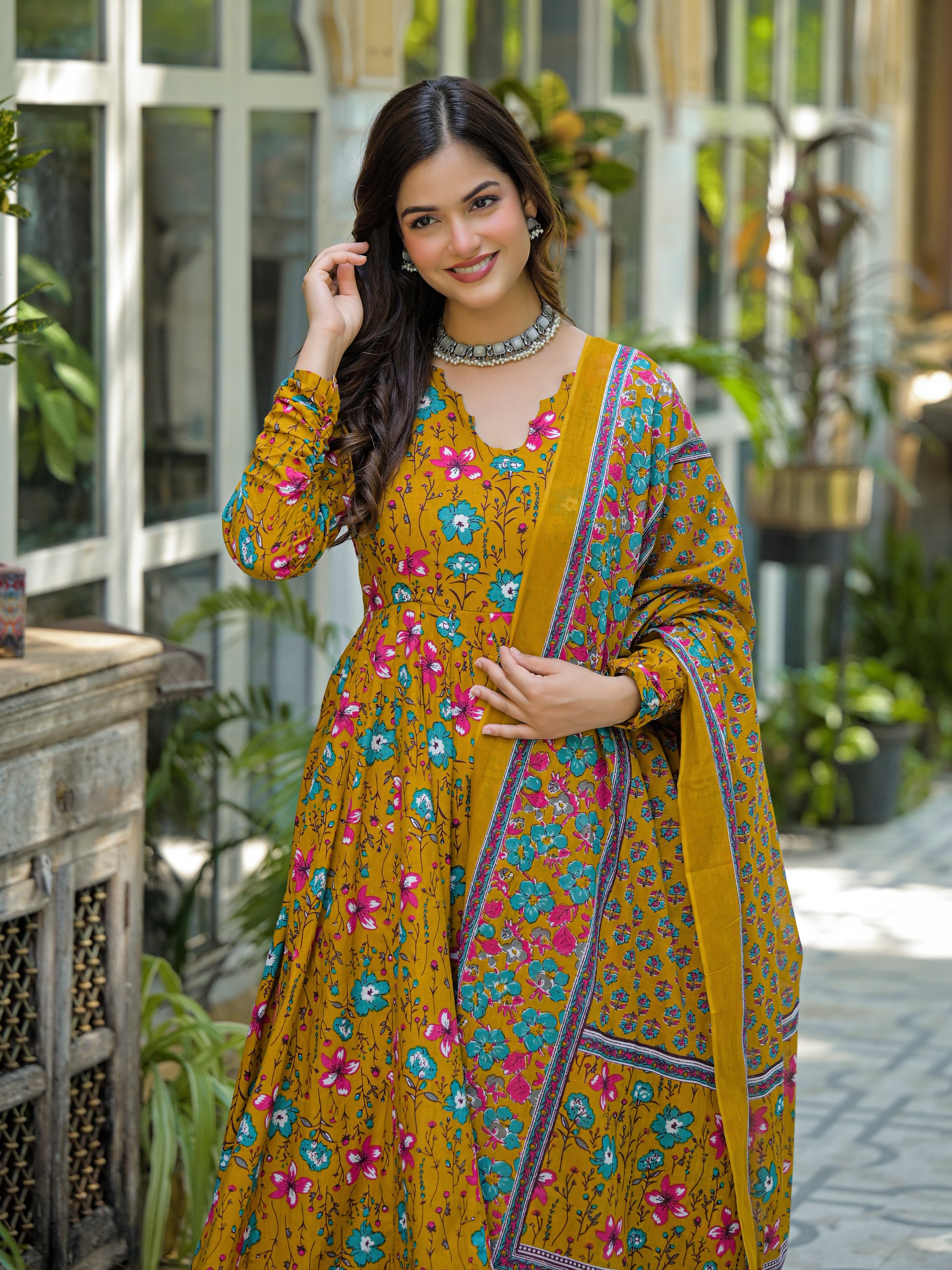 FALAK MUSTARD FLOWER COTTON SUIT SET